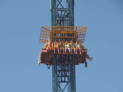 Deze 52 meter hoge mast torent letterlijk en figuurlijk boven het hele park uit. Je wordt met een snelheid van 70km/u de lucht in gekatapulteerd en bereikt de top in slechts enkele seconden tijd! Alsof dit nog niet genoeg is neemt de gondel opnieuw snelheid en val je als een baksteen naar beneden. Van een sensationele vrije val gesproken!