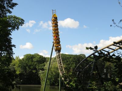 Neem plaats in een van de drie gekleurde Wakala kano's en vertrek op een leuke tocht tussen de bossen en langs het water van de Canadase Kwakiutl-stammen. Zet je schrap voor enkele vinnige bochten, een versnelling en de grote finale: een metershoge antenne waarbij je voorwaarts naar boven klimt en achterwaarts weer naar beneden valt.